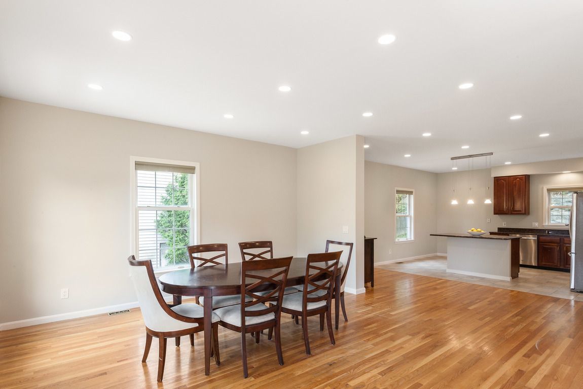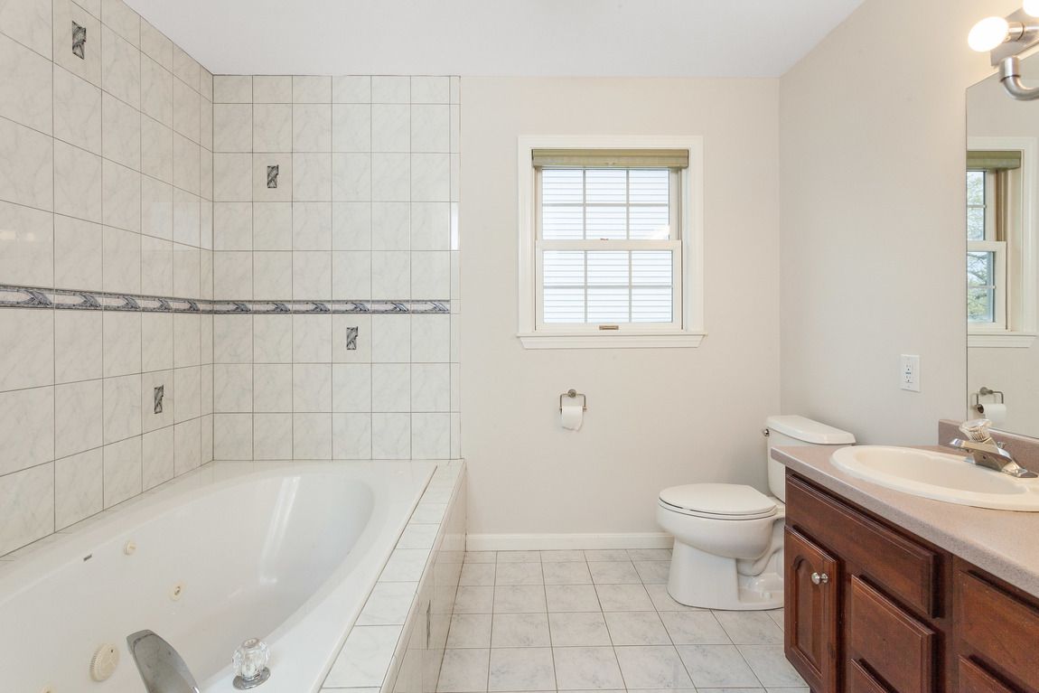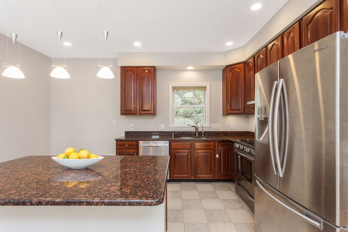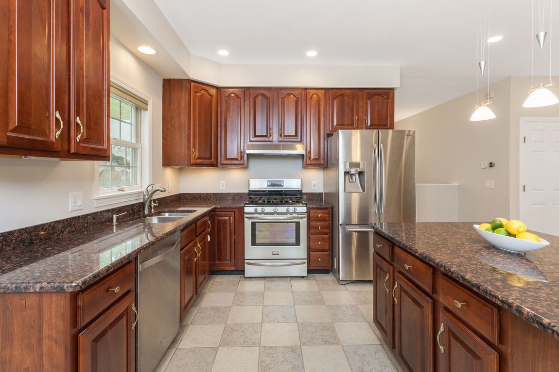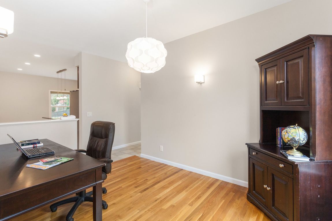 Your main level enjoys 9’ ceilings, recessed lighting, and hardwood throughout. Spend time in the gas fireplaced living room which flows seamlessly into a large, open dining & kitchen area. The modern kitchen is appointed with granite countertops & island/breakfast bar with pendant lights, cherry cabinets & stainless steel appliances. Adjacent to the kitchen is flexible space (currently an office), half bath/laundry as well as upgraded deck with a pleasant yard. Head upstairs to 3 generous bedrooms with 2 full baths. The oversized master bedroom features an en suite bath with stall shower & Jacuzzi tub & walk-in closet. Lower level features playroom/exercise space, storage & access to oversized garage. Many recent updates.