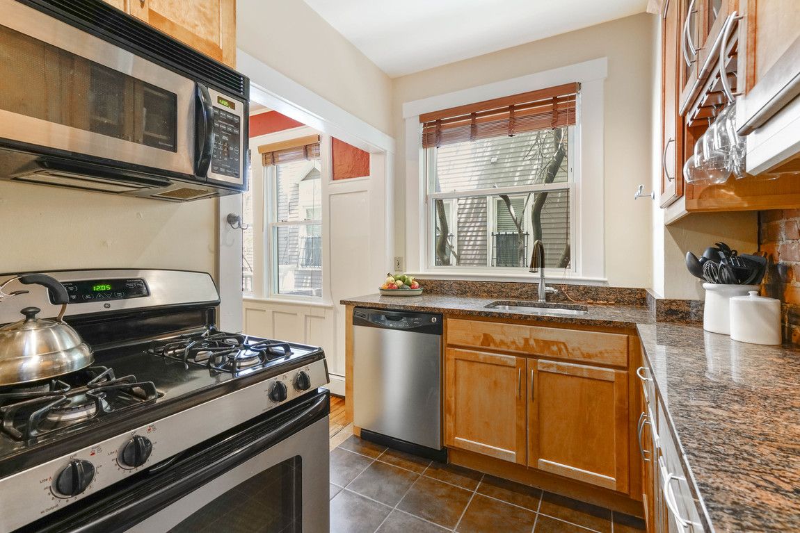 Remarkable Mid-Cambridge opportunity! This 2 bedroom / 1 bathroom home is perfectly situated between Harvard and Central Squares on a tree-lined street, just steps to many of Cambridge’s best offerings. Exposed brick walls, hardwood floors, wood-burning fireplace & beamed ceilings make this first floor home warm & inviting. Paneled dining room adjoins an updated kitchen w/ granite countertops, stainless steel appliances and cherry cabinets. Gated courtyard w/ nicely landscaped common patio. Storage & washer/dryer in basement.